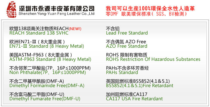 答:目前的人造革與合成革,都會(huì)添加化學(xué)產(chǎn)品,生產(chǎn)過(guò)程中都含有一定的化學(xué)元素存在,在某一方面來(lái)講也是屬于有害物質(zhì)。現(xiàn)時(shí)科學(xué)技術(shù)仍未能達(dá)到100%無(wú)毒, 但是我們都是能通過(guò)歐美出口標(biāo)準(zhǔn)的,2011年我司投產(chǎn)的全水性人造革幾乎能做到100%無(wú)毒,能出口到歐洲對(duì)環(huán)保要求最嚴(yán)格的國(guó)家,我司致力于環(huán)保革的生產(chǎn)與銷(xiāo)信,能為環(huán)保出一份力 ,是我們的榮幸。
