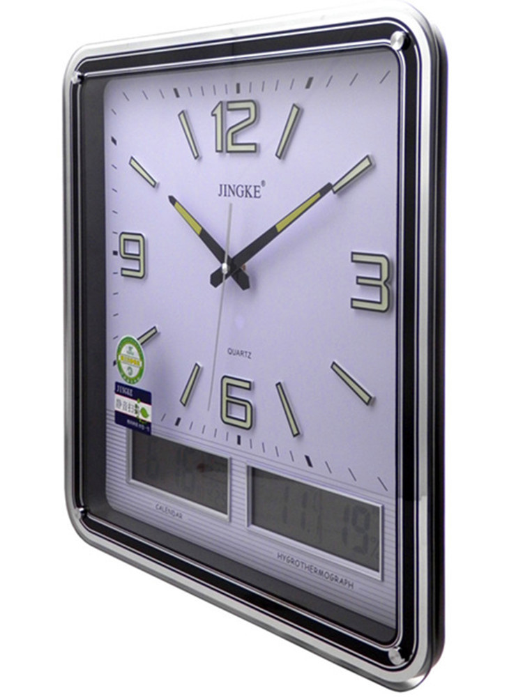 批發(fā)精科豎式掛鐘數(shù)碼萬(wàn)年歷溫濕度電子鐘霸王靜音掃描客廳辦公鐘