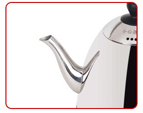 機械壺缺點:因為是利用蒸汽工作原理,所以壺內必須裝有一條蒸汽管(比較難清洗),有時過多的蒸汽會在管內積壓形成水珠,從壺底排出,有些買家會誤以為水壺漏水了。