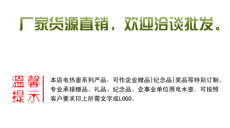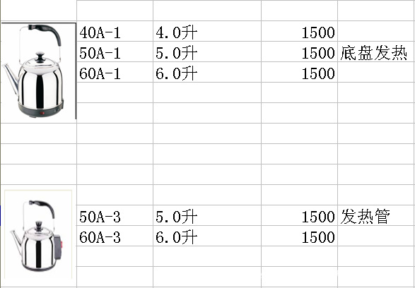 本廠生產的不銹鋼電熱水壺款式多,規格全。有小容量的電熱水壺 1升 1.2升 1.5升 1.8升,大容量的是 4升 5升 6升。歡迎來電洽談 電話(許生)QQ7