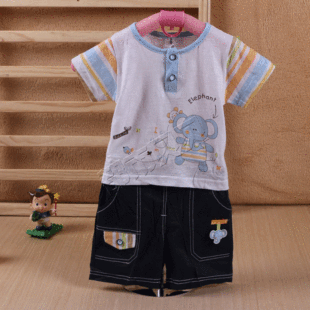 廠家直銷特批頑皮卡通V領(lǐng)短袖兒童套裝BJ500712.8