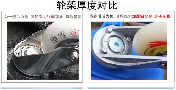 3.好的材料和差的材料之間的成本相差比較大的,有些商家為降低成本,都會(huì)采用成本低一點(diǎn)的材料。而Cyboard板體采用ABS高密度的塑料,板子整體的強(qiáng)度和韌度得到高品質(zhì)的保證,您運(yùn)動(dòng)起來也安全放心!