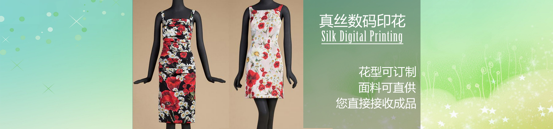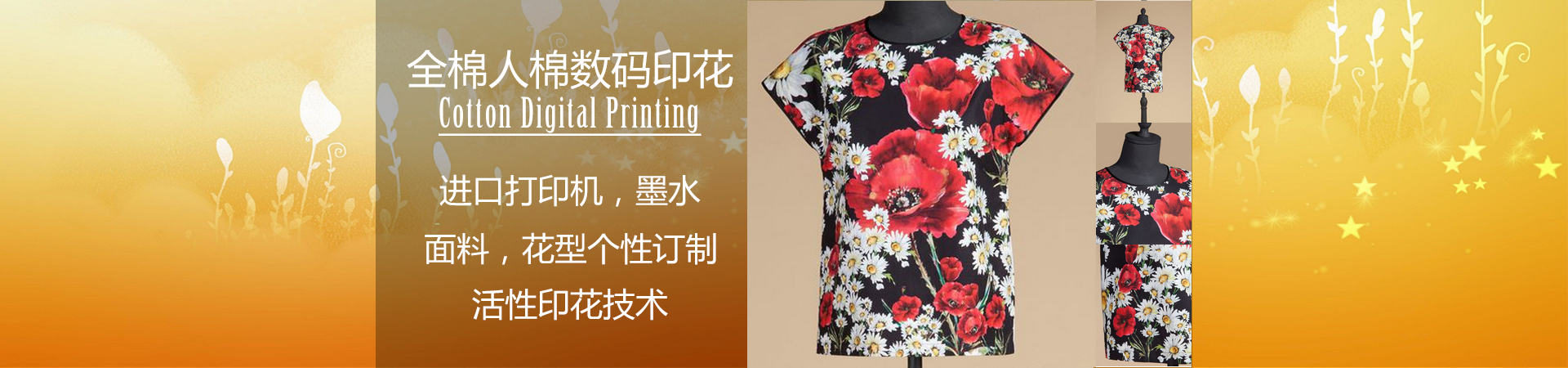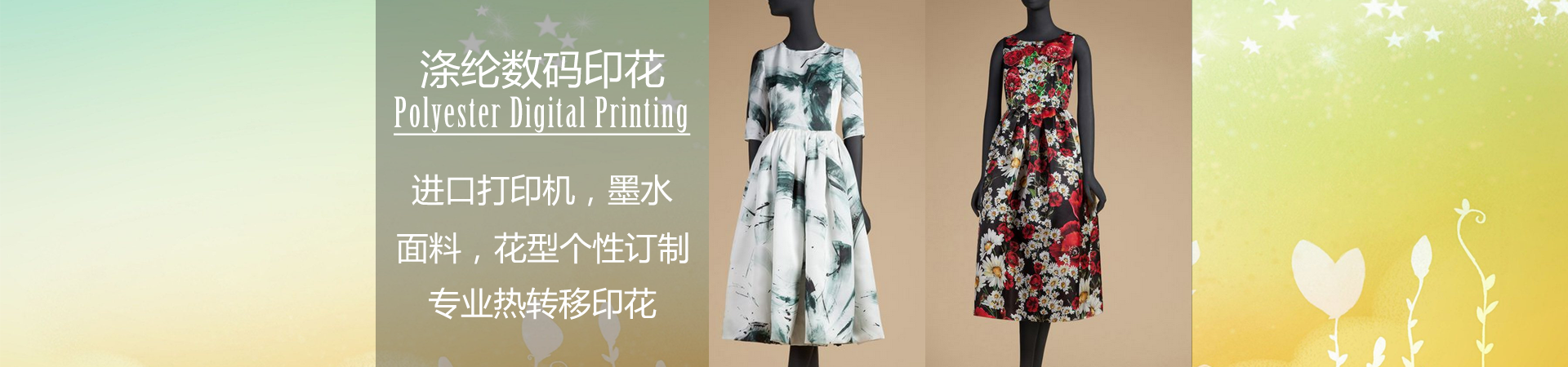 公司從事各類紡織面料的數碼印花加工,適用于活性、分散、酸性及涂料的數碼印花,主要針對多品種、小批量印花訂單生產及各種清晰度寫真花型加工。可以在各種紡織面料上直接印制任意色彩的寫真圖案。數碼印花產品廣泛應用于服裝(旗袍)、服飾、圍巾絲巾、手袋箱包、家用紡織品、戶外休閑用品、汽車飾品、無紡布、寫真照片、工藝畫、廣告畫、掛旗等產品。提供數碼轉移印花、數碼活性印花、 調色分色、 花型設計、 批量打樣,為客戶提供快捷的印花服務,并提供全方位高品質的數碼印花產品。