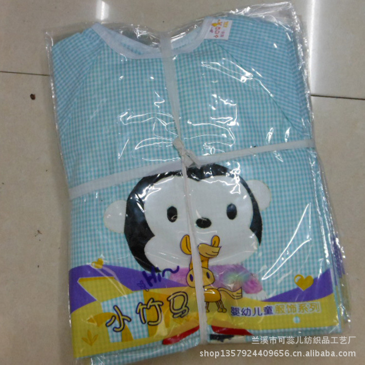 廠家直銷 毛絨卡通全棉泡泡紗嬰童防水罩衣 反穿衣