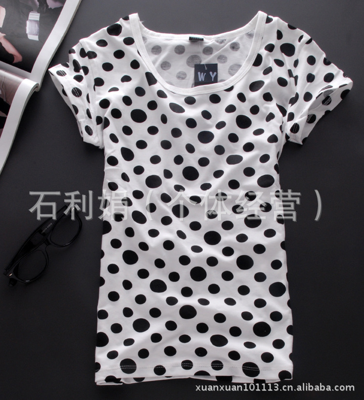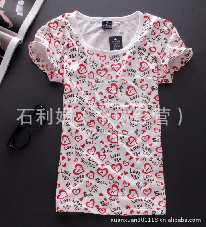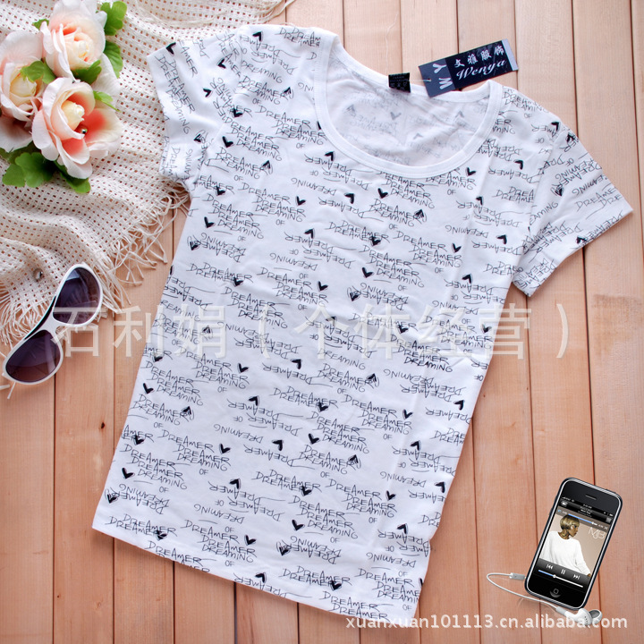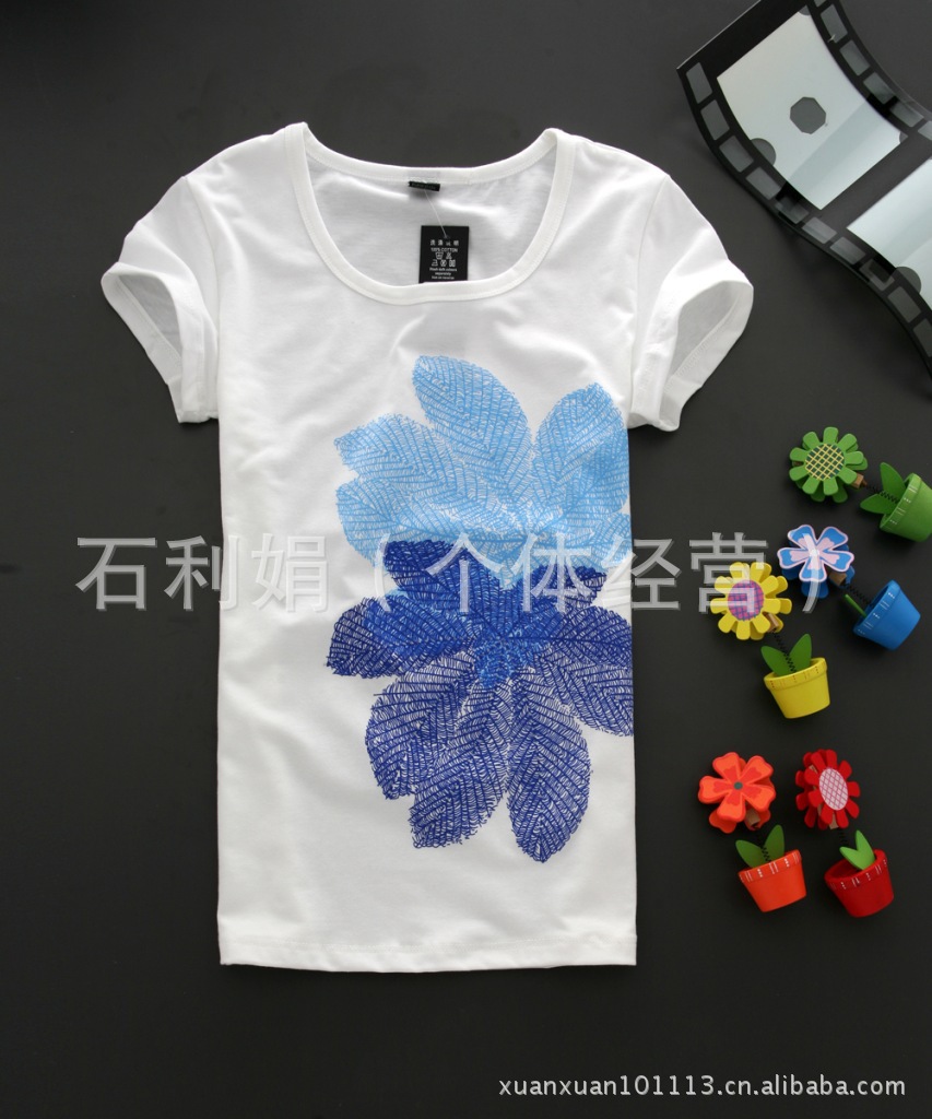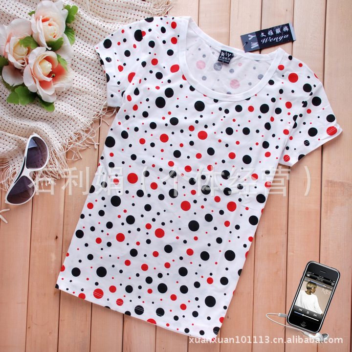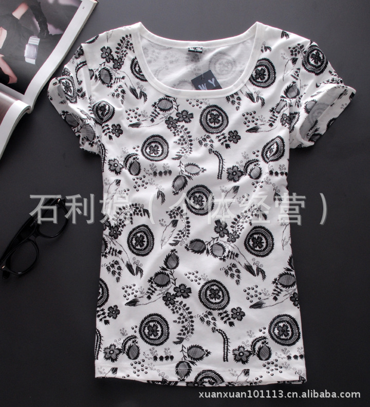 E系列瑞麗時尚女式T恤批發 女裝短袖T恤衫 純棉勾花手搖女T恤