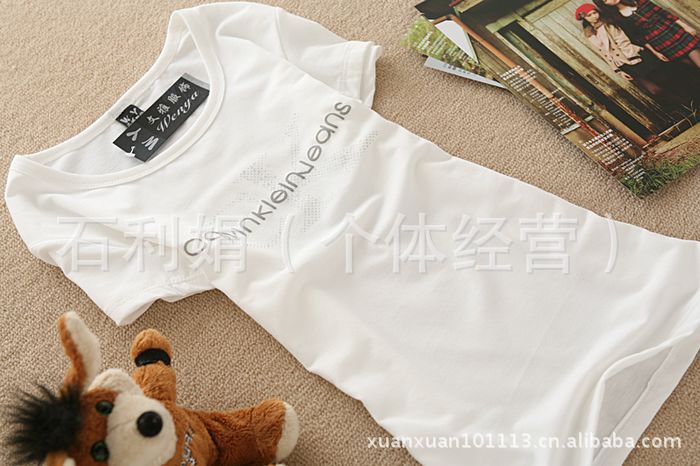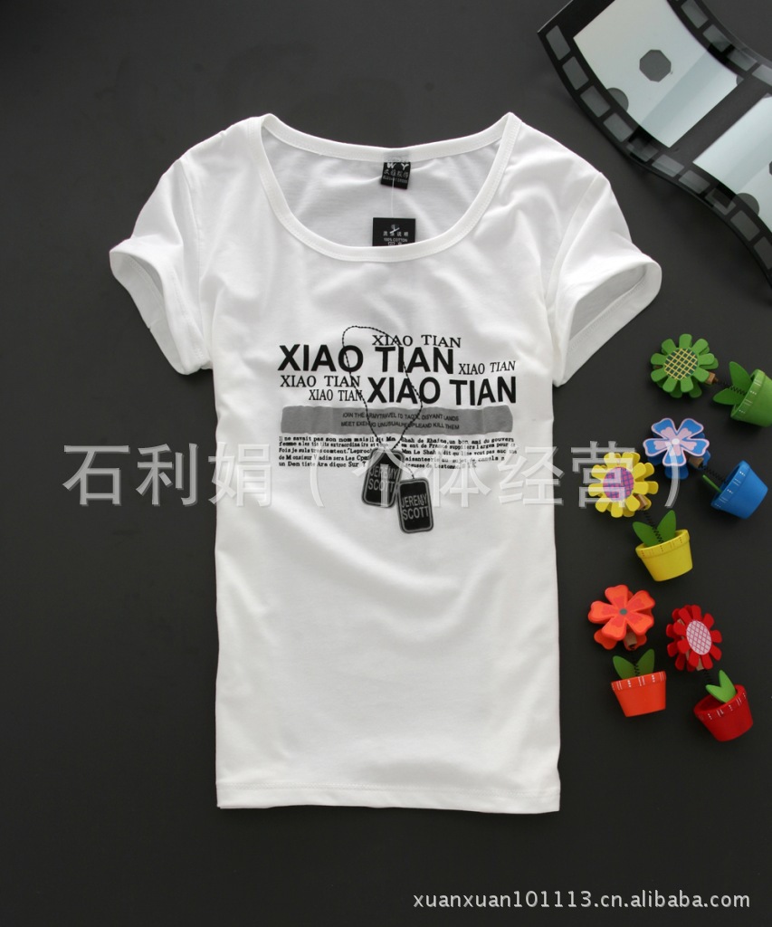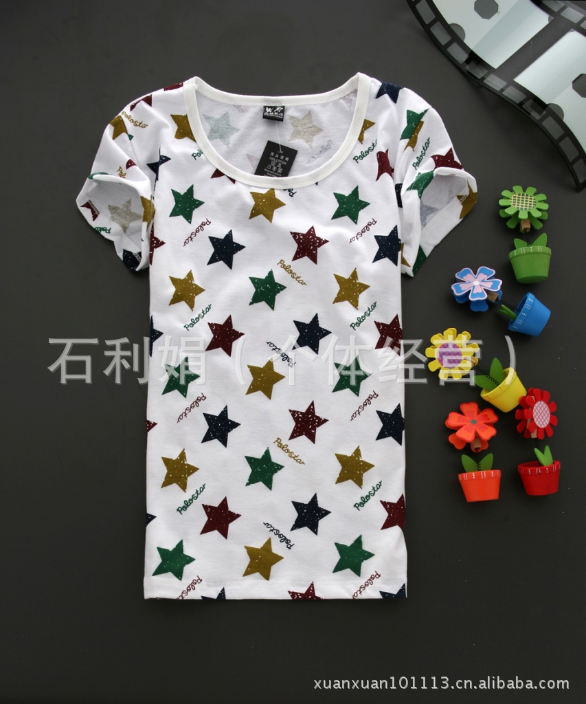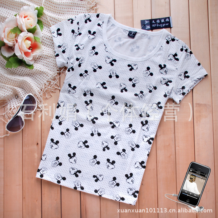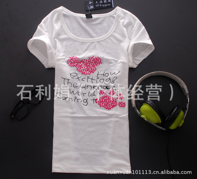 E系列瑞麗時尚女式T恤批發 女裝短袖T恤衫 純棉勾花手搖女T恤