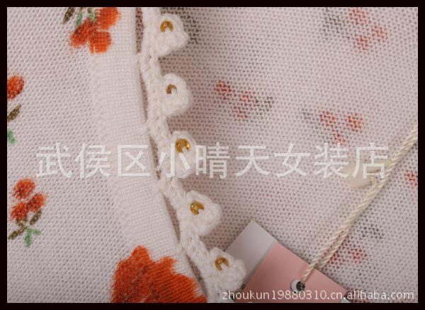 特批2012春正原單@vivi 小碎花串珠鉤針勾花邊超甜美淑女針織毛衣