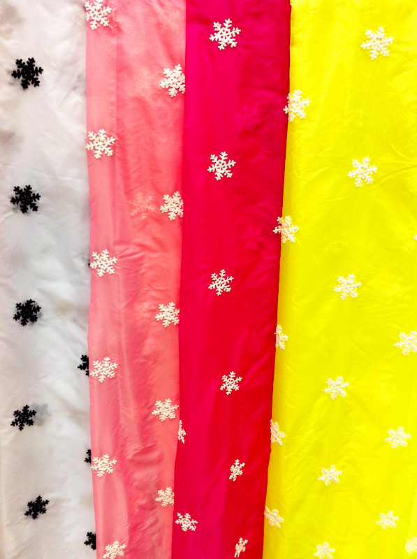 (1)底布:網布,雪紡,變色龍,色丁,特麗綸,仿真絲,滌塔夫,歐根紗,玻璃紗等;