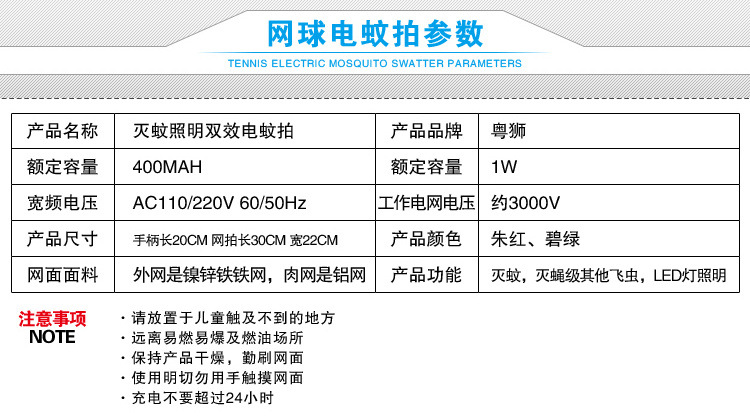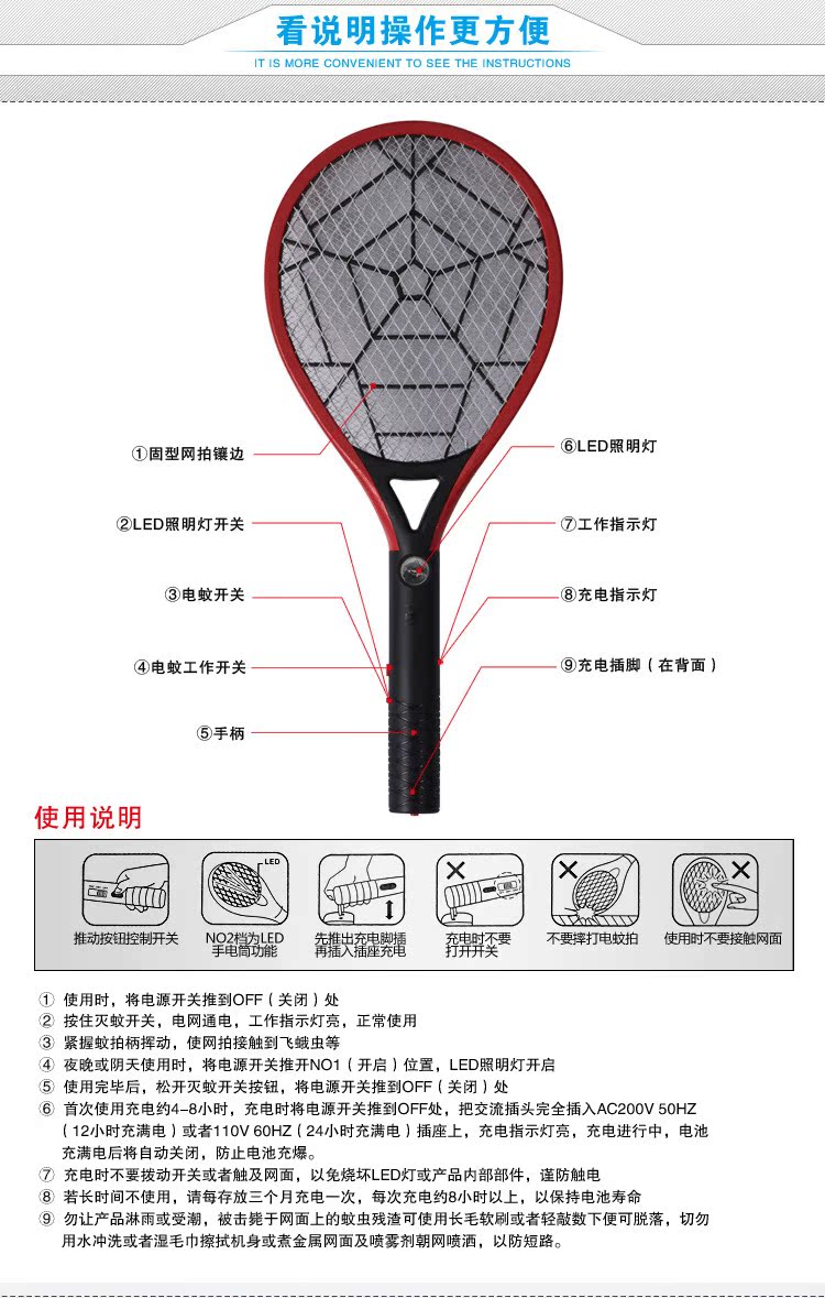 6.切勿在存放有易燃易爆氣體或液體場(chǎng)所使用,電網(wǎng)面勿接觸金屬導(dǎo)電物。