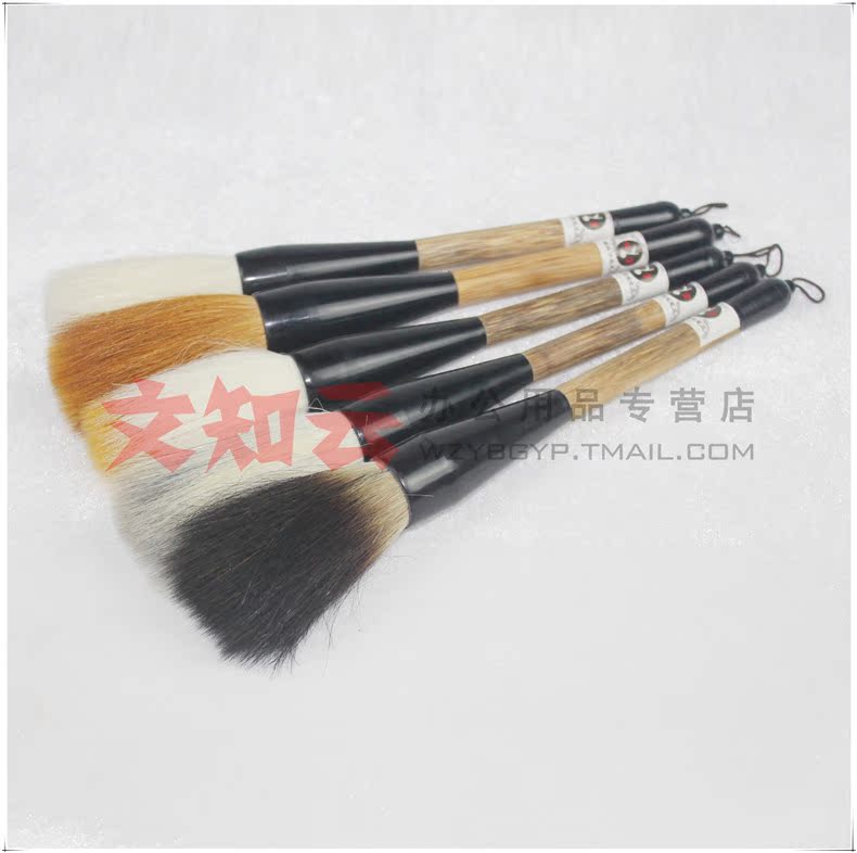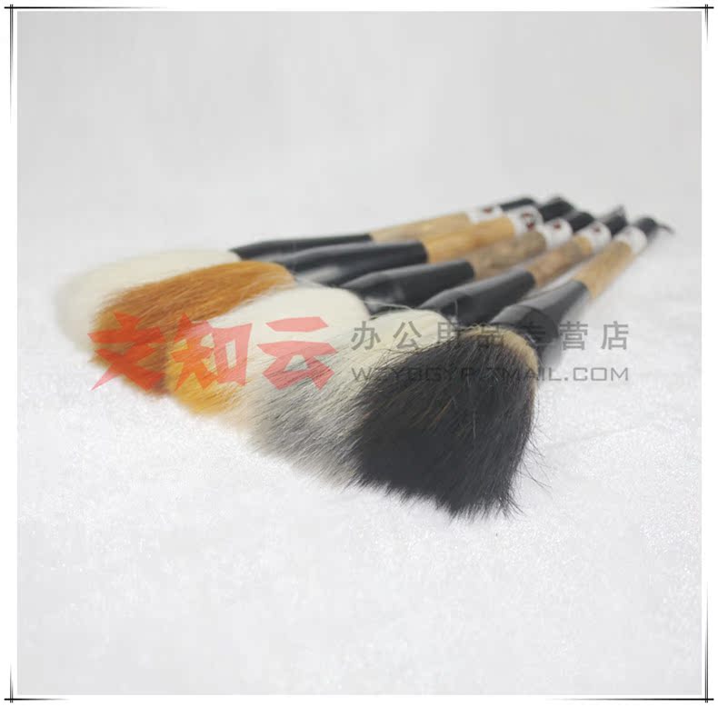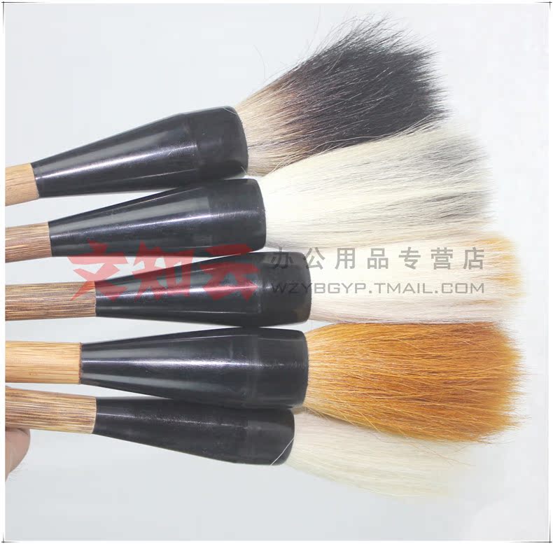 使用說明:說明:羊毫偏軟,狼毫偏硬,兼毫適中,這里就不重點(diǎn)講解了,主要講下石獾乃石獾箭毛、豬鬃精制而成。其石獾箭毛具有粗壯挺拔、剛強(qiáng)有力的優(yōu)點(diǎn),箭毛表面較粗糙,含墨量大,且吐墨均勻,能顯示多種效果,是畫家作松、梅、山水等畫的常用畫筆之一。彈性極強(qiáng),能勾能劃,能皴能擦。但它力健有余,柔韌不足,不太適合表現(xiàn)大片水韻墨跡。書法方面則
