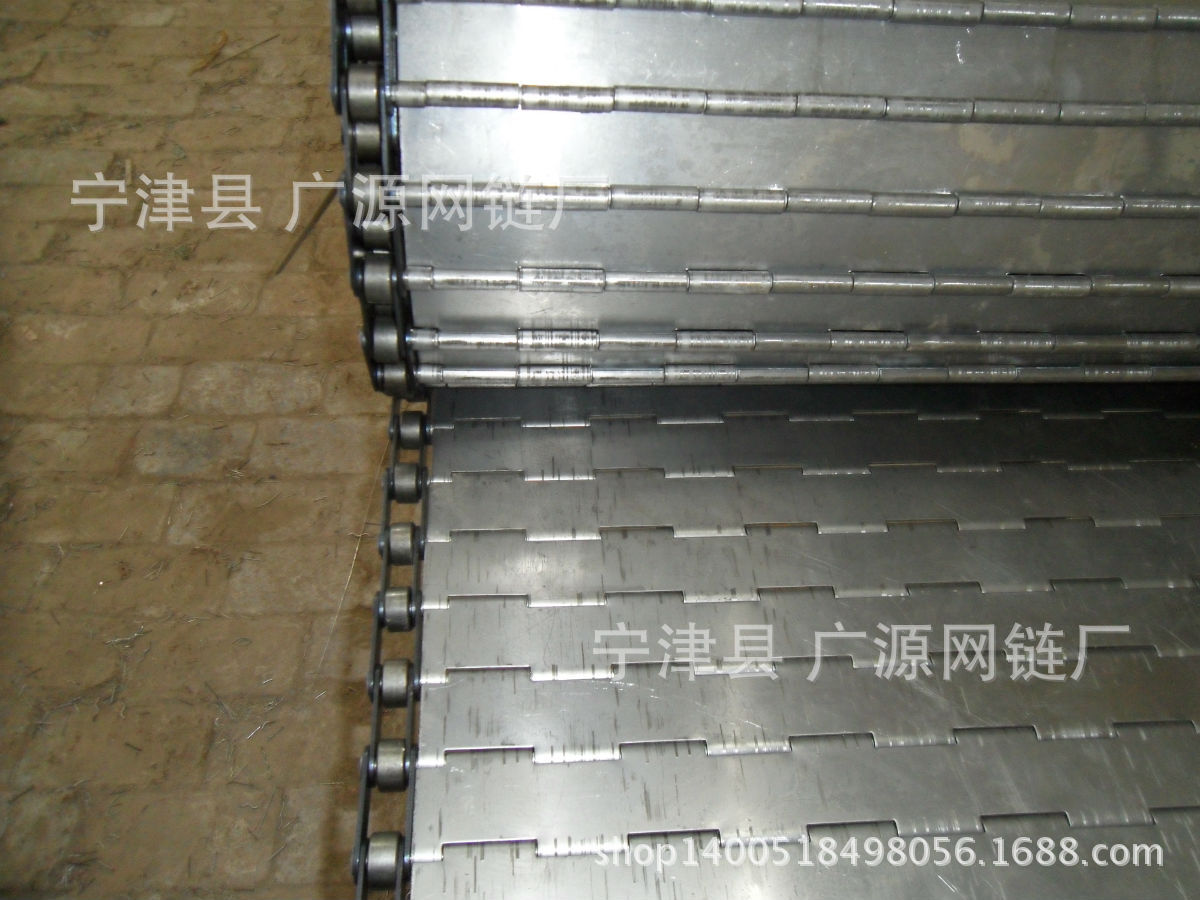 鏈板網帶非常堅固,鏈條驅動,用于中等和大負荷輸送。鋼板彎曲形成合葉,使用支軸將合葉和鏈條串在一起。
