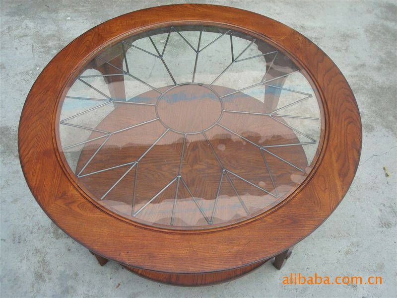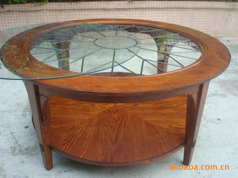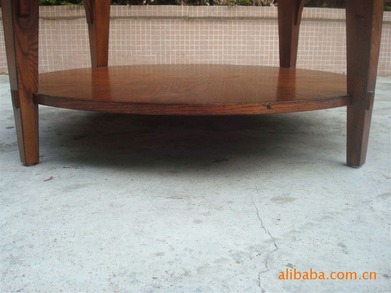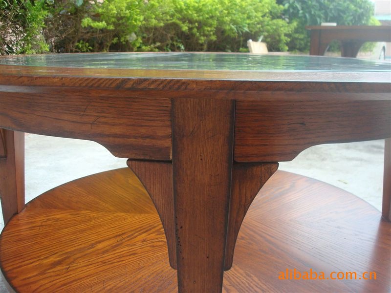傳統美式田園家具柞木紅橡木圓咖啡桌,矮幾