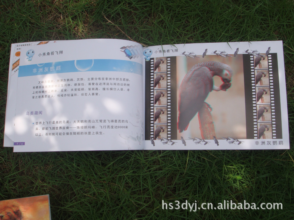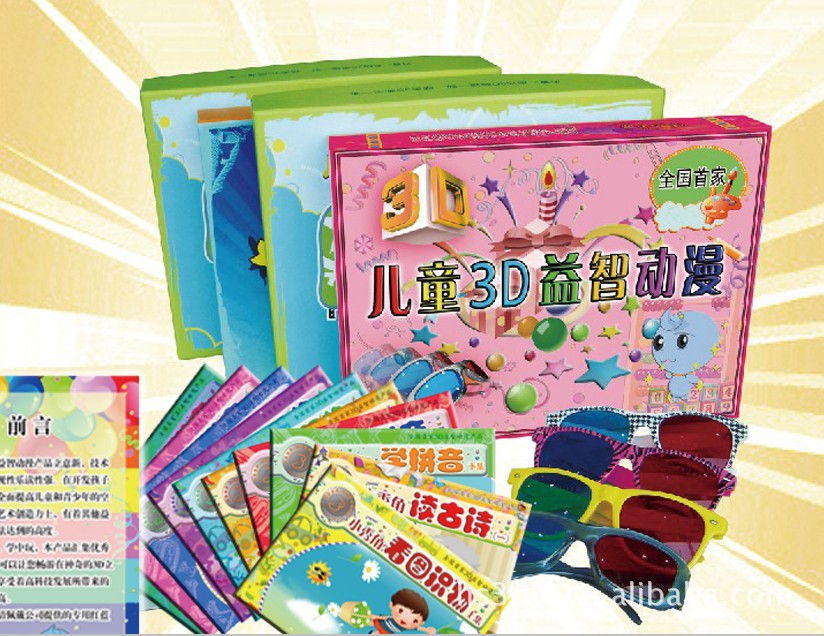 3D益智動漫屬于益智類產品,并不單純是玩具,而是一種新穎的高科技產品。這是我公司從國外引進先進的3D技術,并把它運用于特別編輯的動漫圖書上,當戴上秀角3D眼鏡去看經過專業處理過的圖畫, 會產生一種層次感、立體感,這種身臨其境的感覺,會激發孩子對未知世界的好奇,對新事物的探索與發現。