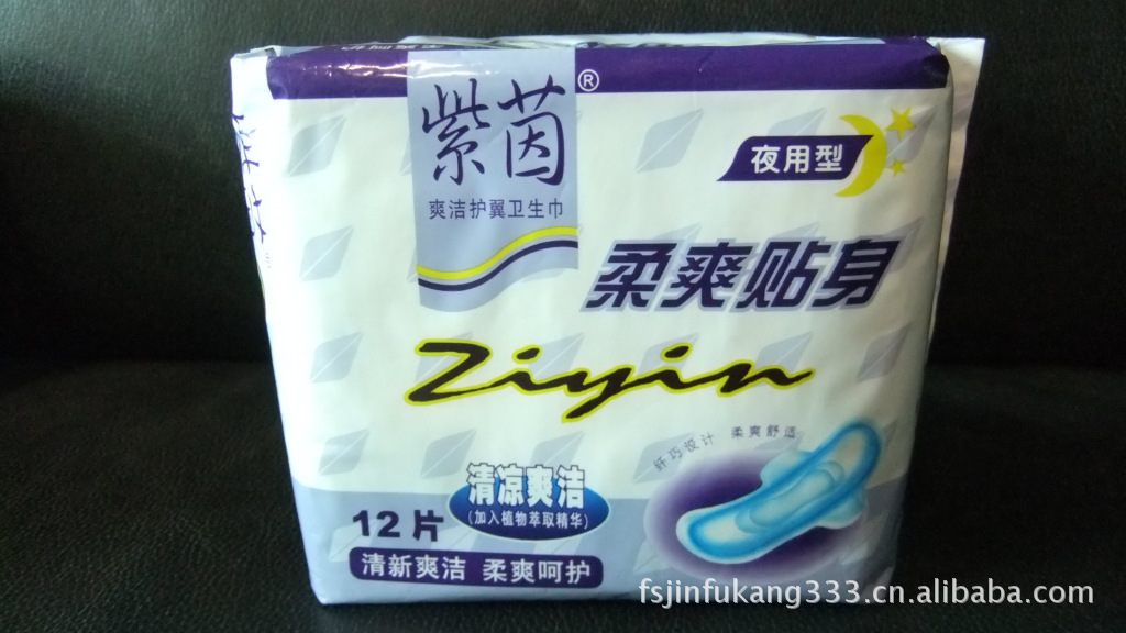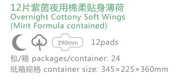 廠家直銷12片紫茵日用棉柔貼身薄荷衛生巾,含薄荷配發,清新祛味