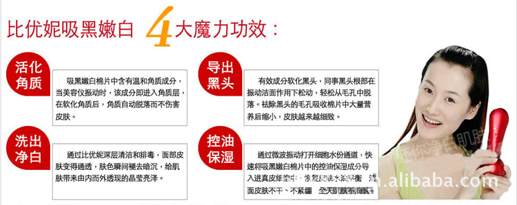 比優妮可以讓皮膚恢復緊質,細滑。充滿光澤。釋放輕柔而頻密的微震潔面、按[mo]技術,能更有效迅速打通面部深層毛孔,激活沉淀深層污垢,吸出深層毛孔中的油脂,化妝殘留,及其它深層污垢從而達到深層潔面的作用