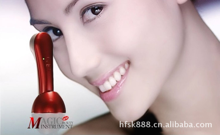 2.按下按鈕,使潔面器處于震動狀態,將儀器輕柔放在臉上進行按[mo],避免觸及眼睛.(將2節五號電池放置儀器內,長時間不使用,可將電池取出)
