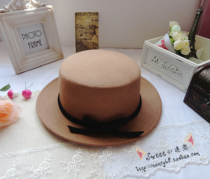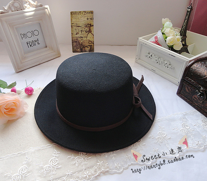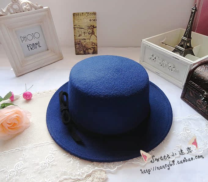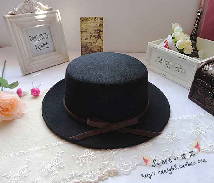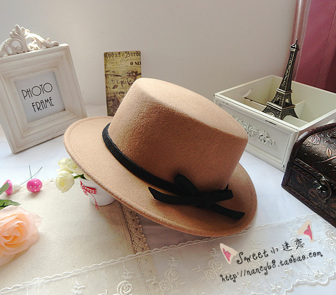 8881 秋冬新款英倫復(fù)古風(fēng)蝴蝶結(jié)純羊毛呢平頂禮帽 高檔大檐帽子