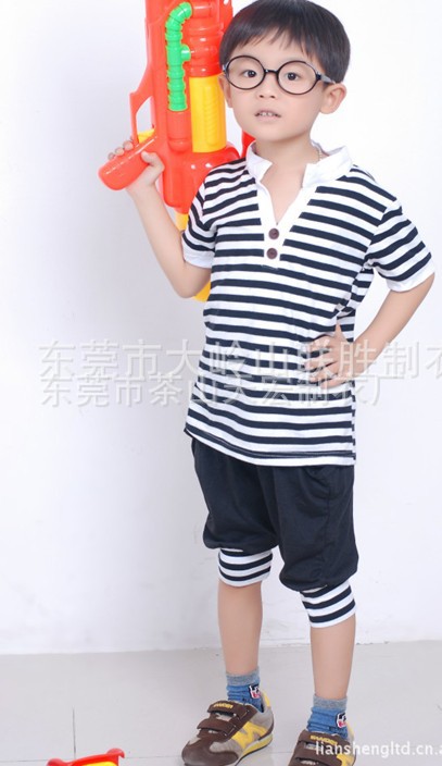 款式名稱: BABY-JIMMY男女童拉架平紋條紋套裝