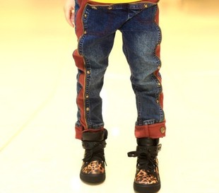 2013時尚牛仔長褲 韓版牛仔時尚雙色時裝褲 女童蝴蝶結件仔褲
