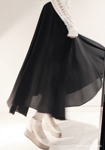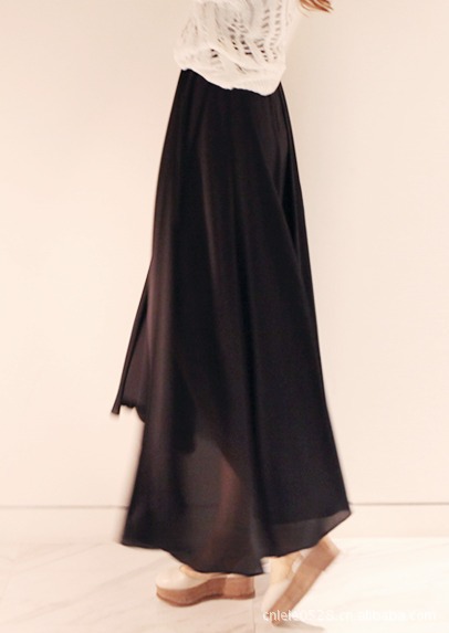 2012韓版雪紡半身長裙 半身長裙 寬邊松緊腰 加工銷售低價
