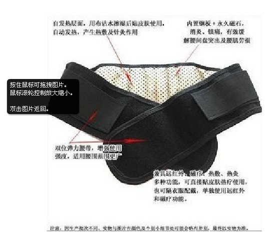 【作用原理】:本隱形熱療帶以天然礦物質電氣石為核心,與納米生物功能材料形成為一體組成本產品。在溫度、壓力變化情況下,可連續釋放遠紅外、負離子。并給人體帶來了微電流的熱電刺激效應。能有效改善血液循環、緩解肌肉疲勞、激活細胞促進新陳代謝、疏通經絡、去風除濕、鎮痛去寒、增強機體抗病能力。產品安全、使用方便、作用持久。