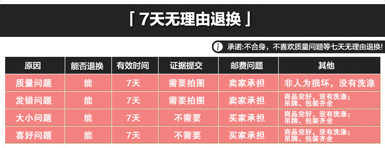 如需退貨/換貨請在簽收后聯(lián)系我們,如是質(zhì)量問題7天包退貨/換貨郵費由賣家承擔,7天后如有特殊情況,產(chǎn)品在不影響第二次銷售可以退/換貨,郵費由買家承擔!郵費以本店發(fā)貨郵費為準!