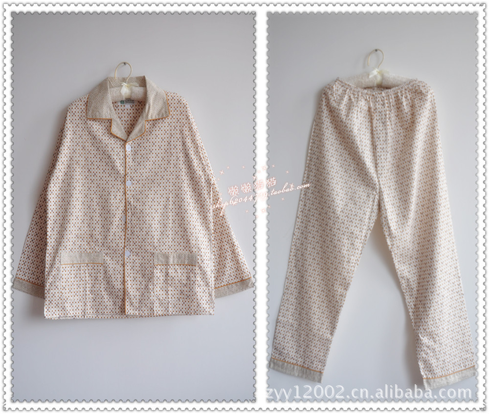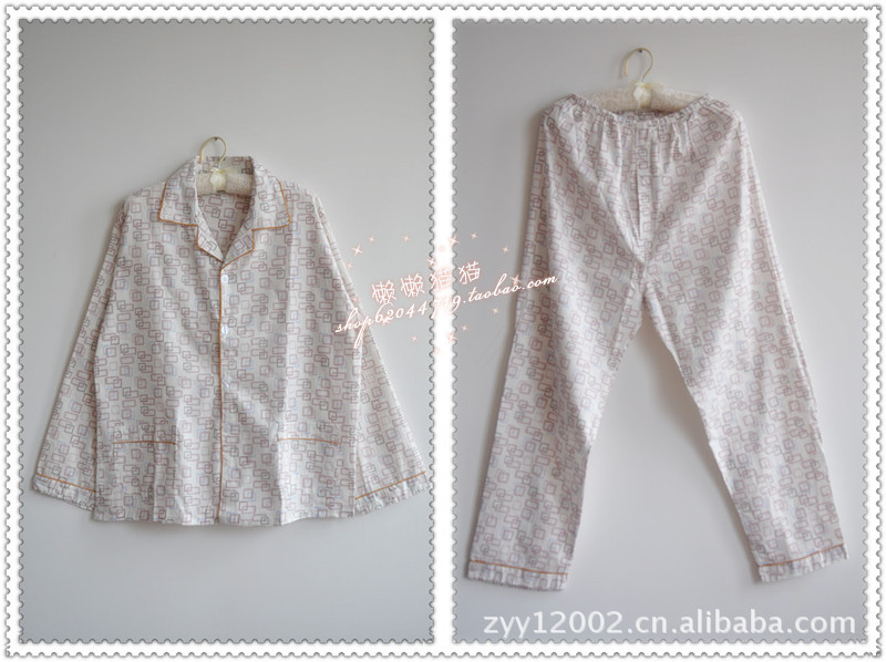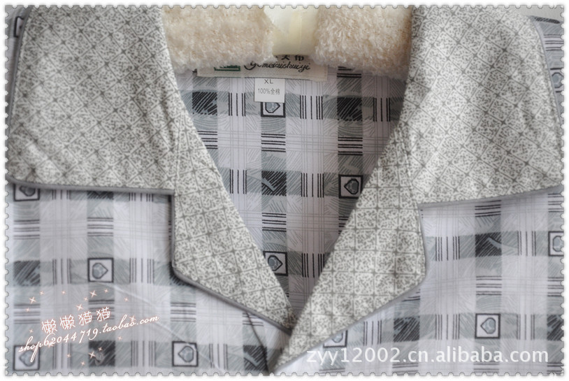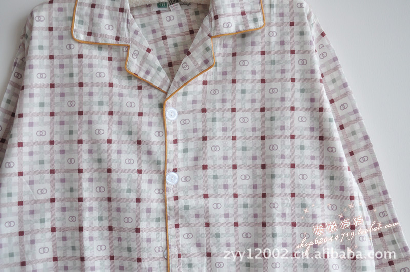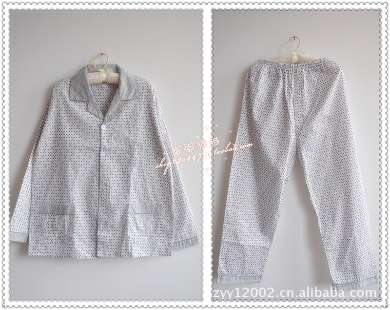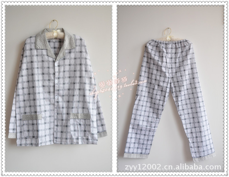 批發(fā) 春秋新款男士梭織棉灰色方格子款長袖睡衣套裝居家服 多色