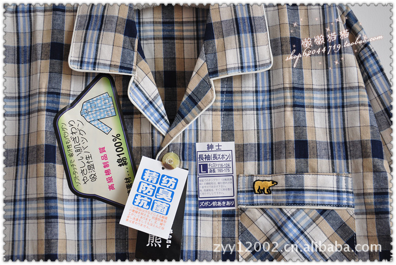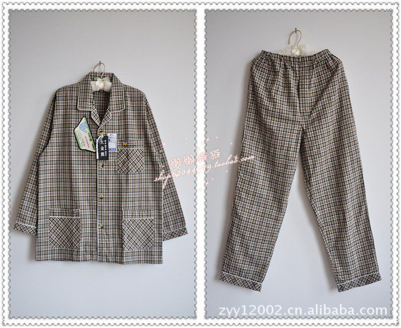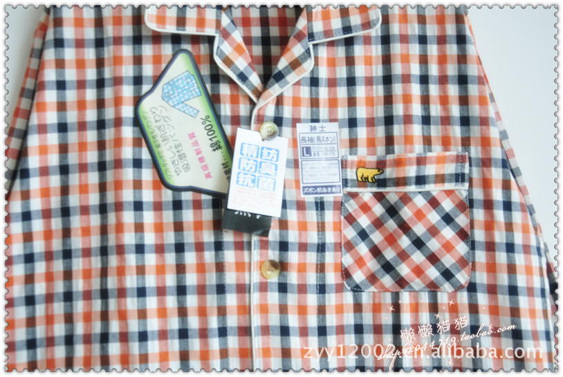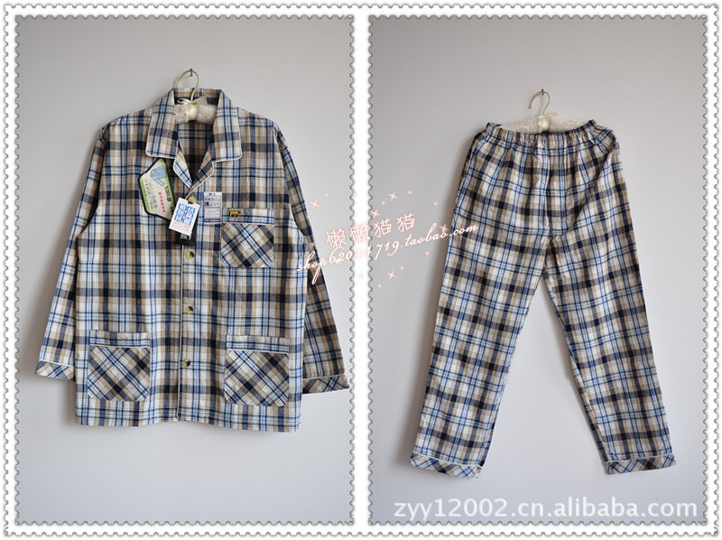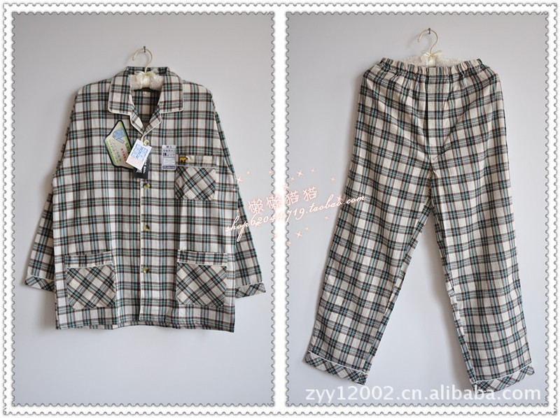 廠家直銷價男士高檔全棉綠色小格子長袖睡衣套裝居家服 多款多色