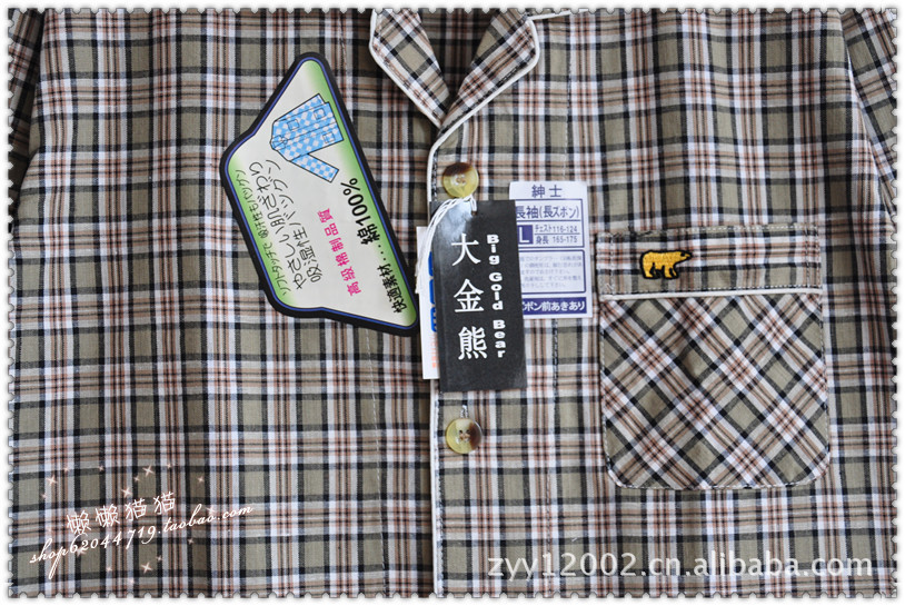 批發零售代發 日系原單外貿男士純棉紅格子長袖睡衣套裝居家服