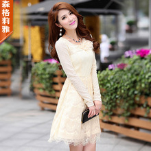 森格莉雅2013春夏新款連衣裙 蕾絲鉤花甜美薄紗 夏裝