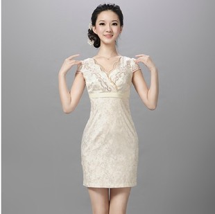 森格莉雅 2013夏裝新款旗袍 時尚復(fù)古改良V領(lǐng)短袖修身旗袍