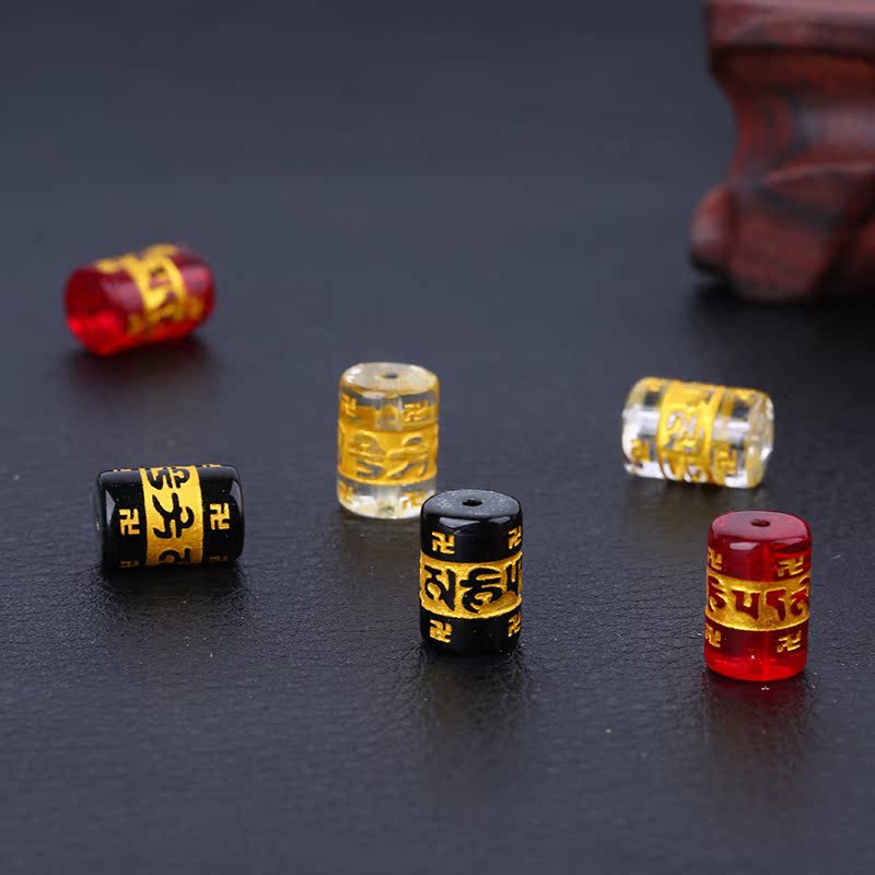 直徑8MM柱子六字真言佛珠散珠桶珠 3色可選 燙金刻字散珠轉(zhuǎn)運(yùn)珠