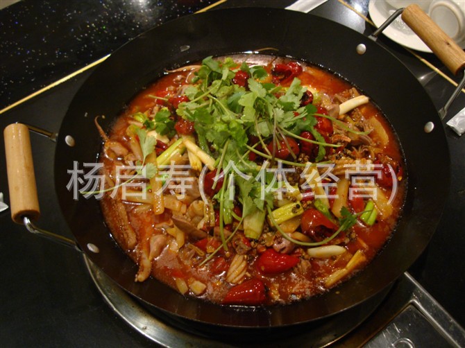 特色:集中餐和傳統(tǒng)火鍋吃法于一體,先吃后涮,口感麻、辣、鮮、香、嫩、脆,湯色紅亮,主料食完后,再利用剩余的湯汁(或加湯)燙食其它葷、素菜;干鍋菜可根據(jù)不同的主料配以不同的輔料,起到口感互補的作用。
