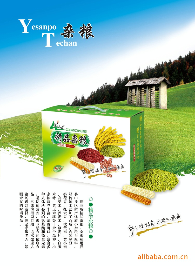 野三坡牌雜糧禮盒,精選河北省淶水縣野三坡AAAA即國(guó)家風(fēng)景名勝區(qū)所產(chǎn)優(yōu)質(zhì)小雜糧為原料,經(jīng)傳統(tǒng)工藝加工而成,有小米、白瑪雅玉米糝、大黃米、蕎麥米、燕麥片、綠豆、黃豆、蕓豆、小豆等,是養(yǎng)生保[jian]的食品