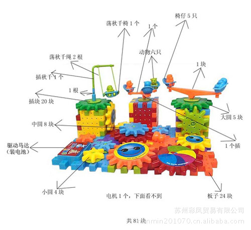 小零件色彩鮮艷,有小熊,小猴子在樂園里玩摩天輪,蹺蹺板,蕩秋千,簡直就是一個游樂園,非常吸引寶寶的注意,寶寶可以隨意發(fā)揮自己的想象拼出各種形狀,只要把1只5號電池裝入含小馬大的那片積木,寶寶就會驚奇的發(fā)現(xiàn)他拼出來的東西竟然是有生命的,很神奇吧,相信你一定不會錯過!