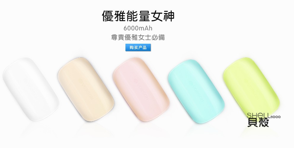 移動電源 貝殼6000mah電源 移動充電器 iphone/ipad充電器 維爾尚