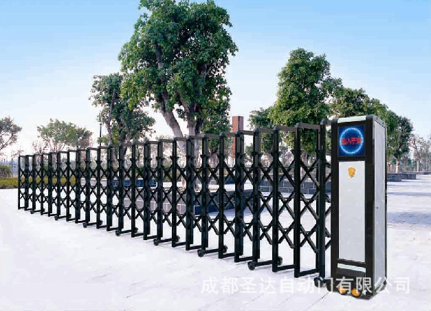 電動伸縮門的組成:主要由門體、驅動器、控制系統構成。門體采用優質不銹鋼及鋁合金專用型材制作,采用平行四邊形原理鉸接,伸縮靈活行程大。驅動器采用特種電機驅動,蝸桿蝸輪減速,并沒有手動離合器,停電時可手動啟閉,控制系統有控制板,按鈕開關,另可根據用戶需求配備無線遙控裝置。可配備滾動顯示屏,顯示500字的顯示內容。還可配備智能紅外線雙探頭防碰撞裝置,遇人或異物20-30CM可自動返回運行,從而保障車輛及行人的安全。