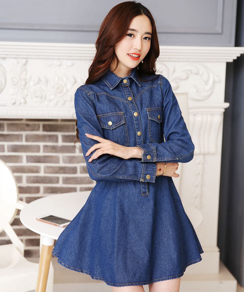 翻領(lǐng)、長袖、A字闊擺裙