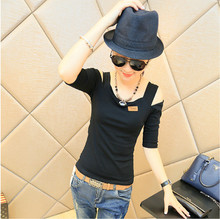 東大門2014秋裝新款女純色顯瘦露肩女裝中袖打底衫t恤一件代發¥24.00