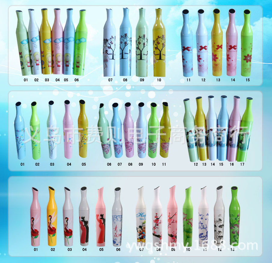 產品介紹:這不只是一個漂亮的瓶子,打開瓶子的 上端拉出來就是一把漂亮的傘;這個造型別致的瓶子,把傘收藏在里面,不僅可以豎著擺放,打開瓶蓋拉出掛繩還可以掛起來,成為美妙的擺設品;把濕傘裝在里面 也不會漏水;別具匠心、充滿情趣的產品作為贈品也是一個不錯的選擇......