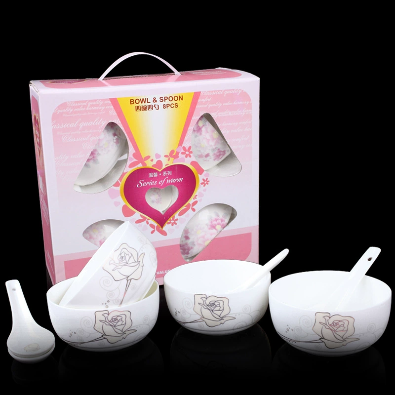 工廠直銷陶瓷餐具 韓式4碗4勺 8頭套裝 促銷贈(zèng)品婚慶回禮 LOGO¥11.00原價(jià):¥11.50
