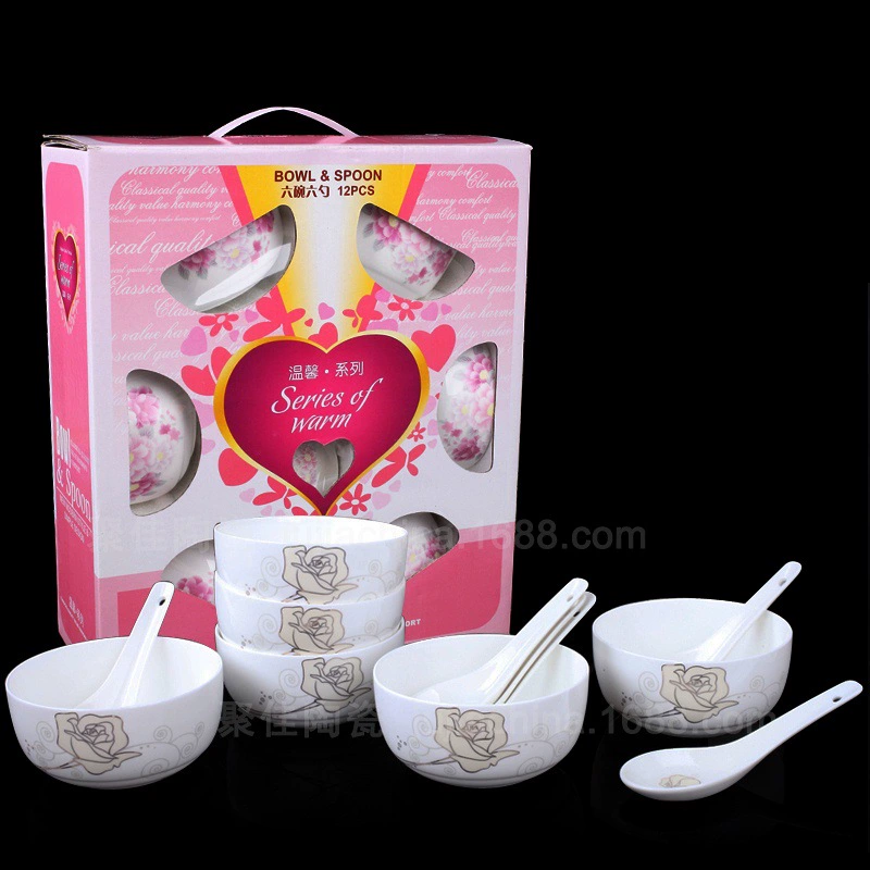 廠家直銷 陶瓷餐具套裝 12頭陶瓷6碗6勺 活動(dòng)促銷贈(zèng)品 結(jié)婚回禮¥15.50原價(jià):¥16.50