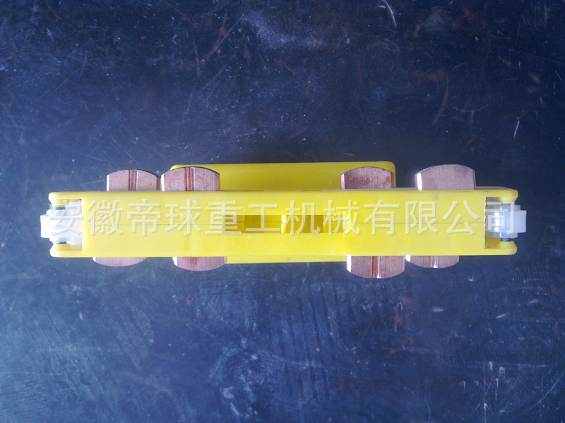 集電器是滑觸線系統中集電側拾取電能的主要裝置之一,它通過集電刷與導軌的滑動接觸,將電能直接傳導至用電器,從而實現系統的移動供電。集電器由機械結構的張力裝置和直接與導軌滑動接觸的集電刷兩部分組成,機械結構的張力裝置決定集電刷與導軌的滑動接觸壓力和機構的穩定性,集電刷則是導軌滑動接觸拾取電能的導體,它的性能和導電質量以及材料結構成分的優劣,將直接影響整個系統設備的安全運行質量,因此集電器是整個滑線系統中主要的部件之一。