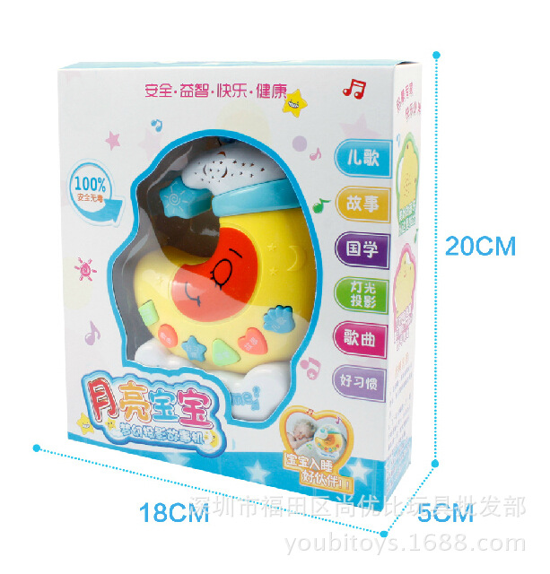產(chǎn)品功能介紹:帶有56個學(xué)習(xí)內(nèi)容,月亮的帽子能投射出七彩的星星月亮。帶有兒歌、故事、國學(xué)、歌曲、好習(xí)慣、媽媽們,帶小朋友們一起來學(xué)習(xí)吧!