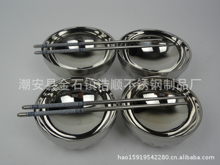 特價促銷不銹鋼雙層隔熱碗 焊邊百合碗12cm套裝碗