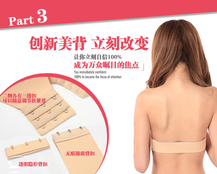 一片式無(wú)肩帶無(wú)痕露背隱形文胸新娘婚紗禮服內(nèi)衣兩用背扣