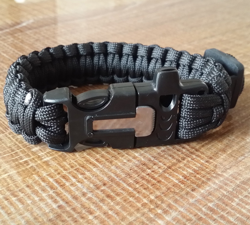 產品名稱:戶外救生手鏈 指南針打火石口哨逃生手鏈 戶外裝備 生產批發