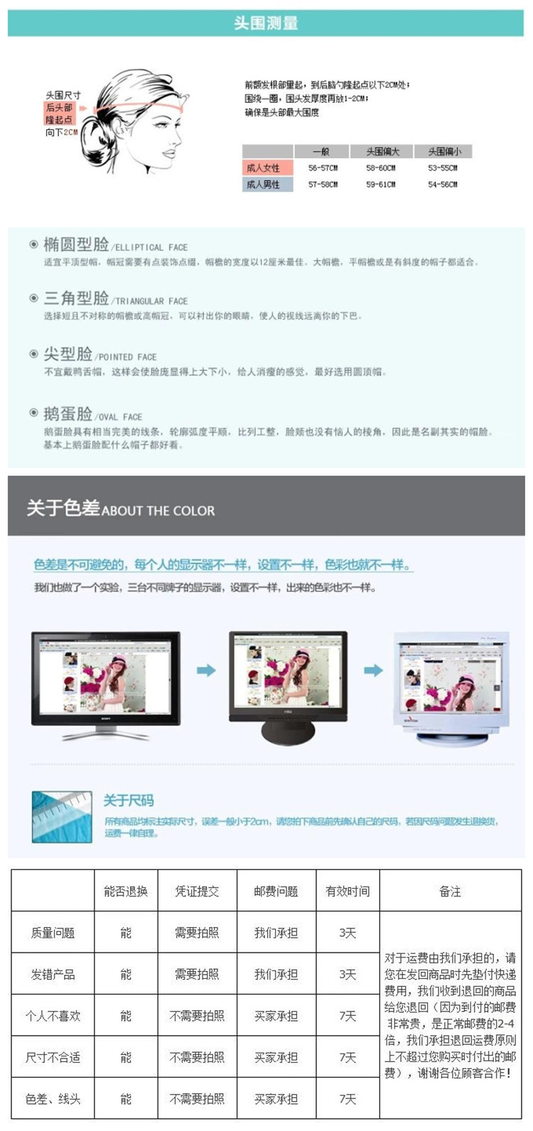 溫馨提示:產品尺寸都是手工測量,由于每個人的測量方法和量具不同,有些許誤差屬正常現象,但我們保證會在1-2cm之間,請放心購買!由于拍攝光線、角度和顯示器參數設置不同,色差是無法避免的,接受者拍哦!