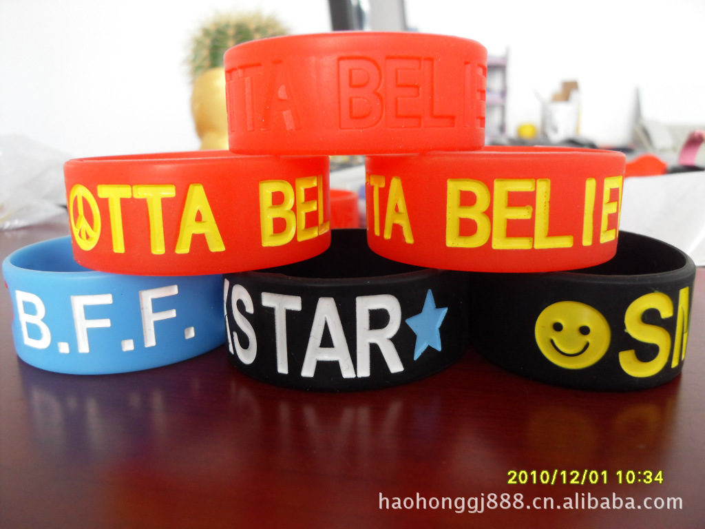 產(chǎn)品特點(diǎn):手環(huán)的材質(zhì)為矽膠材質(zhì),產(chǎn)品的規(guī)格大小均能設(shè)計(jì)生產(chǎn),產(chǎn)品表面可以定制產(chǎn)品LOGO,環(huán)保無(wú)毒。且具有手感柔軟,彈性度好,色彩鮮艷、造型美觀等優(yōu)點(diǎn)