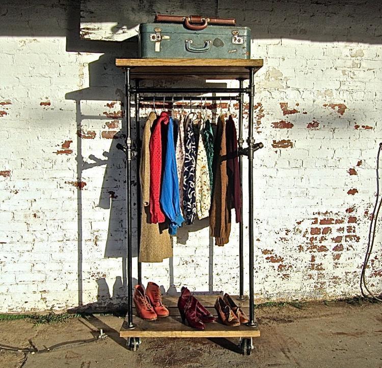 loft衣架 鐵藝重型腳輪衣帽架 B1復古做舊風格置物架/高端/高檔